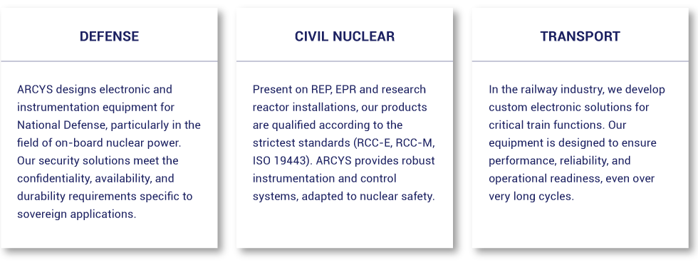 ARCYS is a designer, manufacturer, and maintainer of safe and available electronic systems dedicated to the most demanding environments. Our solutions are designed to guarantee safety, performance, and reliability throughout the lifetime of critical installations.